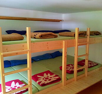 Unser gepflegtes Matratzenlager mit neun Schlafplätzen vermittelt echte Hüttenatmosphäre. Für zeitgemäßen Komfort sorgen separate Duschen und ein eigenes WC. Die Verwendung eines Hüttenschlafsacks ist obligatorisch.